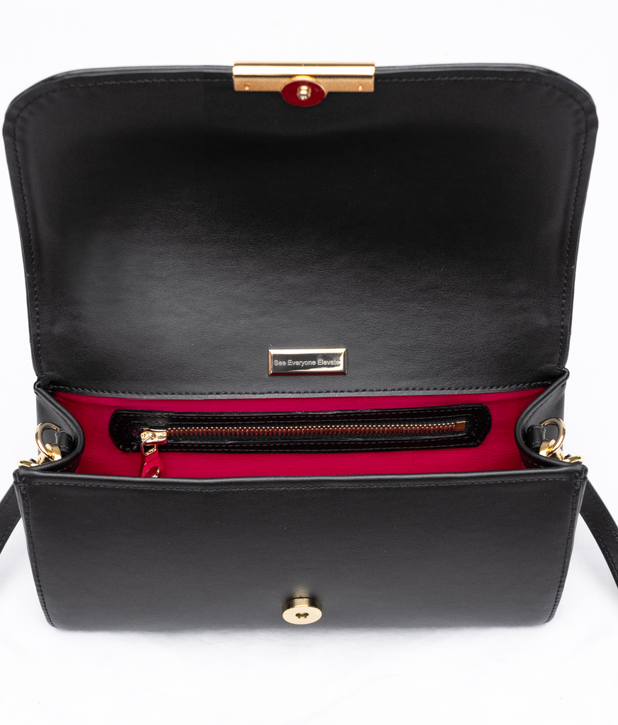 Measuring 10" long, 6" wide, and 4.5" deep, it offers organized interior compartments for easy access to essentials. Finished with non-tarnish stainless steel gold hardware and an engraved "SEE" outer label, it also carries an inspiring "See Everyone Elevate" message on the inner label—reflecting our commitment to inclusivity and empowerment.