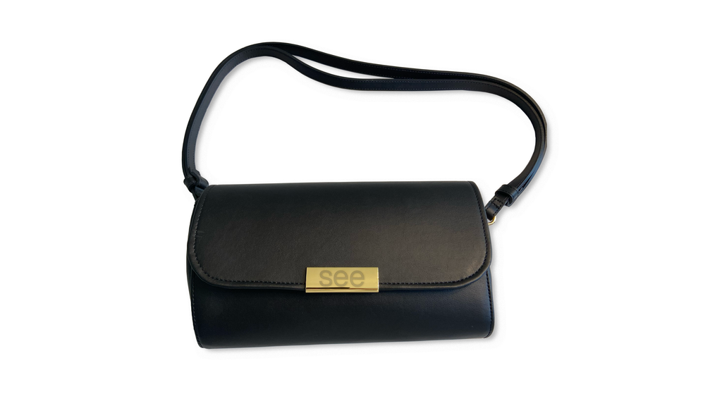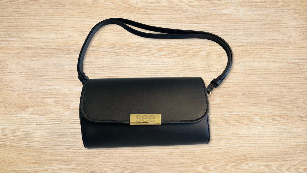 - Elegant Hardware: Features non-tarnish stainless steel gold hardware, with "SEE" engraved on the outer label.