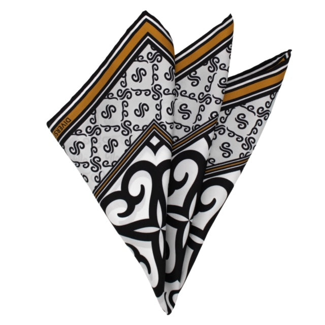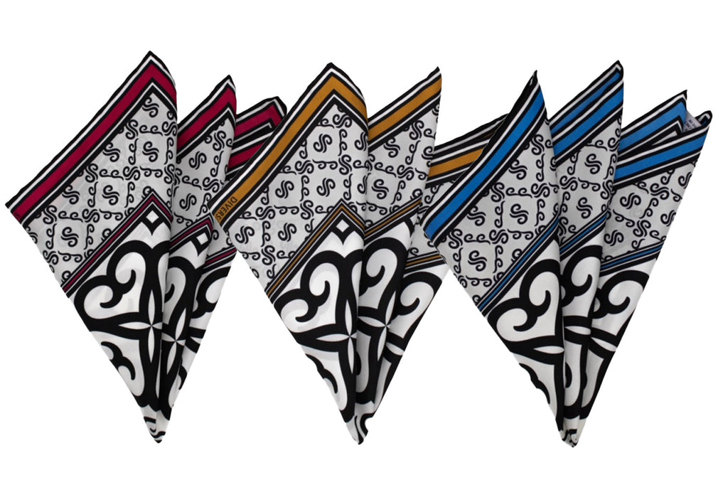 Our pocket square is made from 100% premium silk and measures 16.5” x 16.5”. It is a luxurious silk accessory for men and embodies the SEE mission of diversity, inclusivity, and sustainability. (It can also be worn as a neckerchief for women) It is available in border trims in three rich colors: pink, gold, and sky blue. Buy one or get the multi-color pack of three!