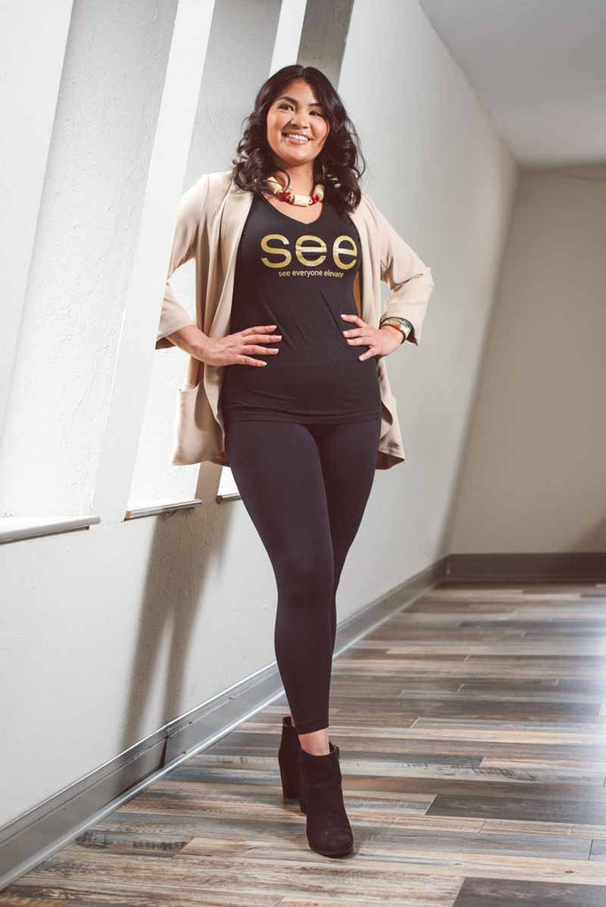 Crafted from ultra-soft, breathable Hemp and Organic Cotton fabric, this short-sleeved V-neck tee offers a luxurious feel and a flattering fit, making it an essential addition to your wardrobe. Our SEE tee embodies our brand's mission— See Everyone Elevate—while providing effortless style for any occasion.