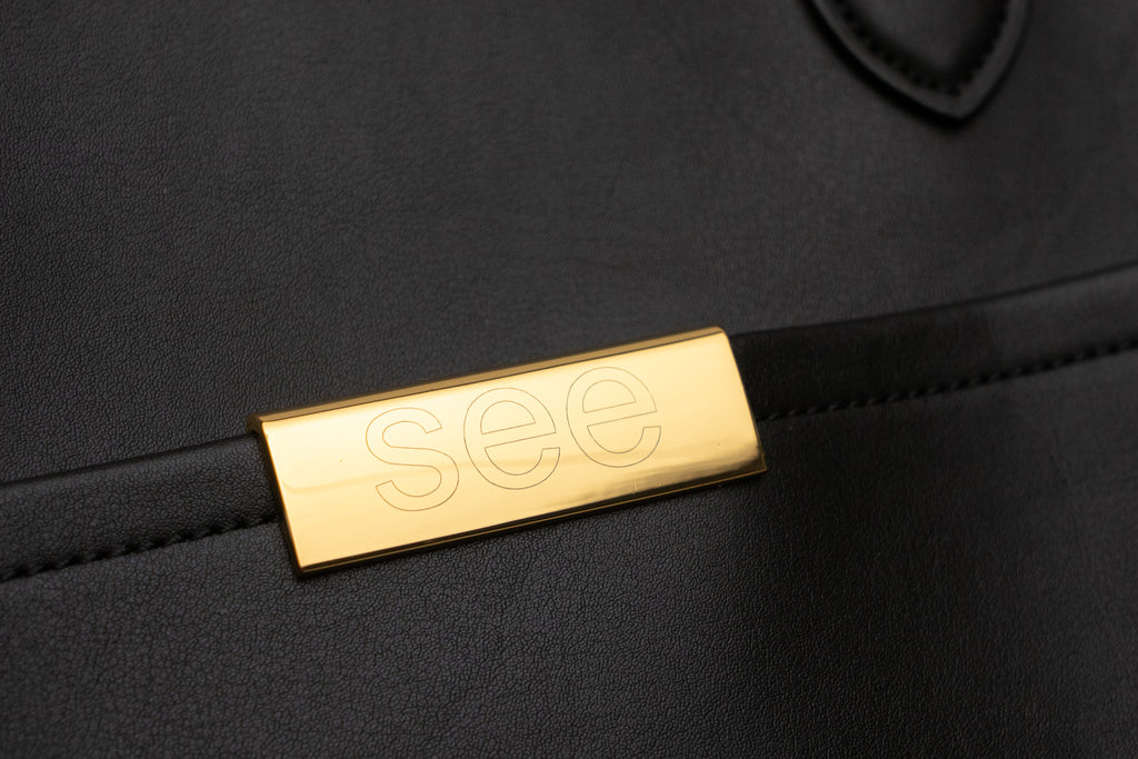 - Elegant Details: Sustainable stainless steel gold hardware with "SEE" engraved on the outer label